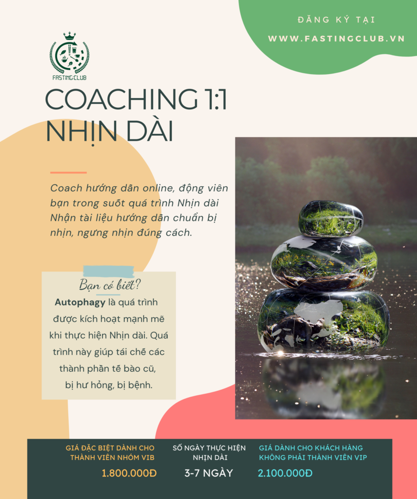 Trang web này và tất cả các tài liệu mà nhóm Admin Fastingclub cung cấp trên trang web cũng như trong nhóm Fastingclub trên Facebook là sản phẩm độc quyền. Bạn không được sử dụng trang web hoặc các tài liệu trên do Coach cung cấp cho bạn trong quá trình sử dụng dịch vụ với mục đích quảng cáo, kinh doanh thương mại trừ khi được ủy quyền rõ ràng từ nhóm Admin Fastingclub.